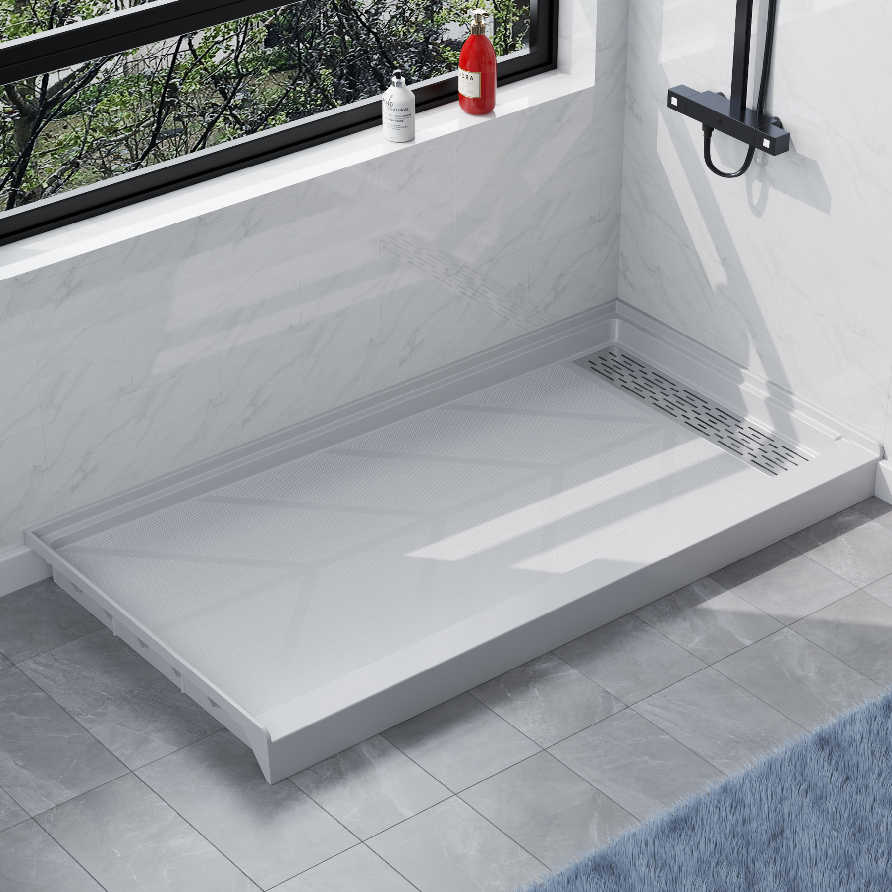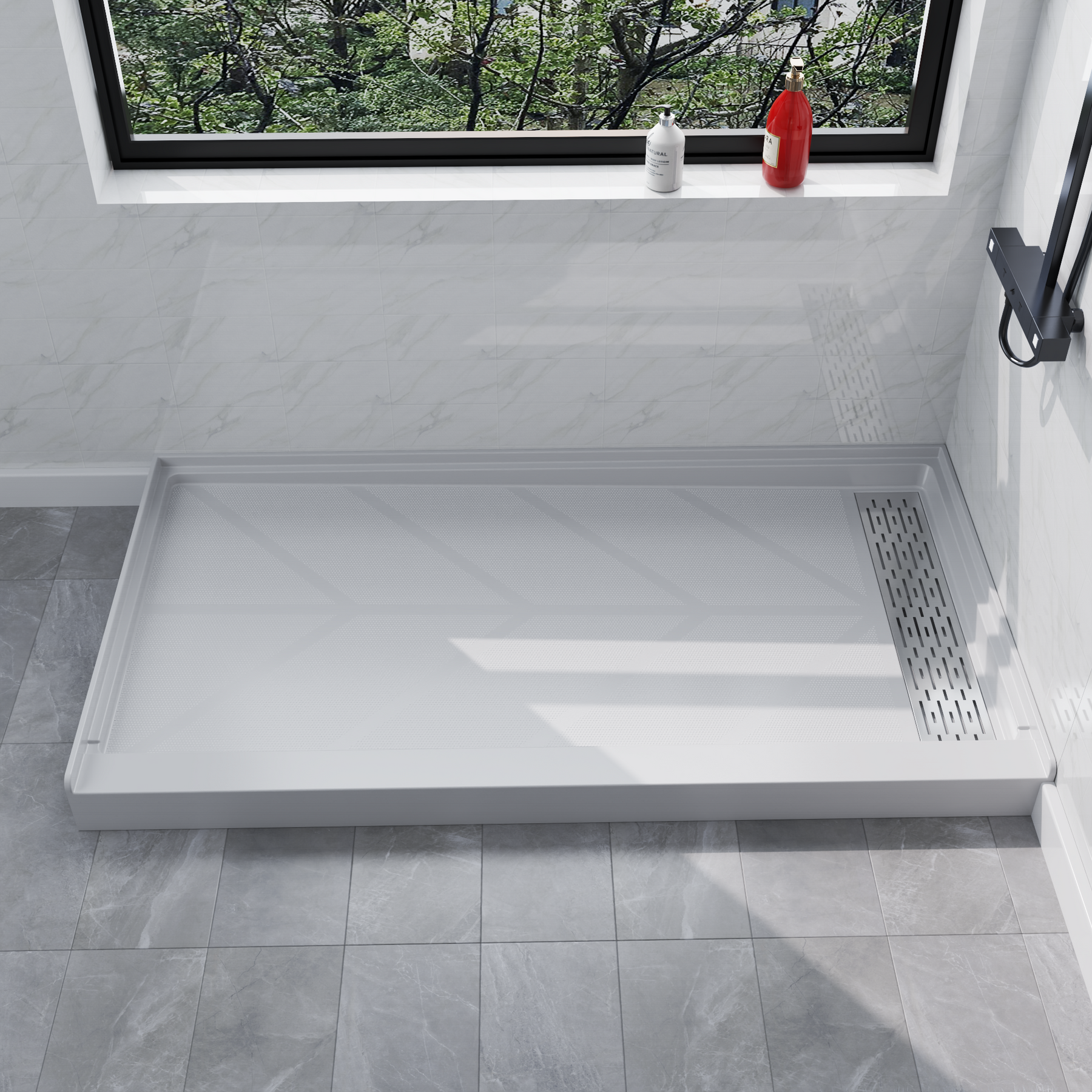 60'' x 32'' Aclove Shower Base with Stainless Steel Linear Drain Cover, Glossy and non-Slip surface